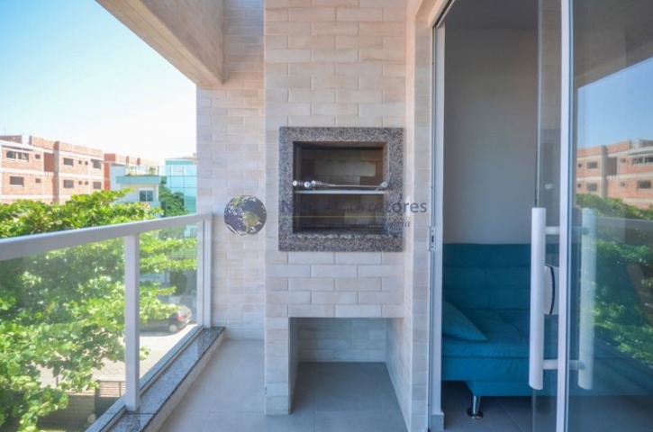 – Sacada com churrasqueira e vista lateral do mar