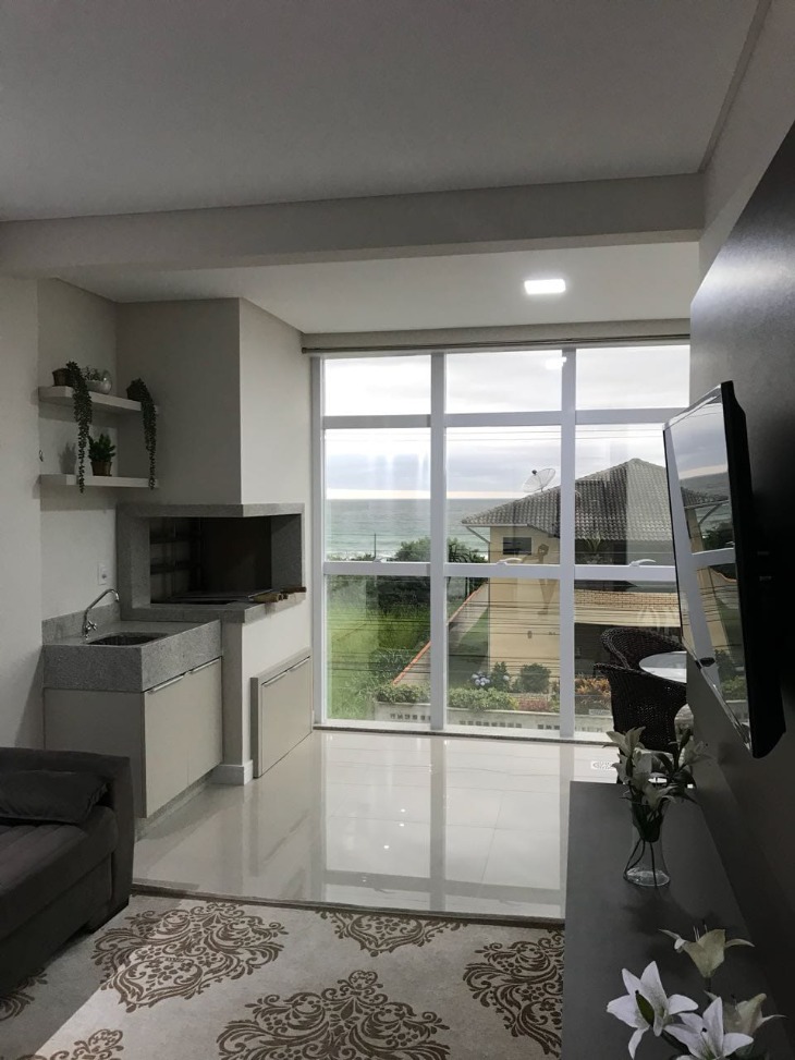 – Sacada fechada com vista para o mar e churrasqueira