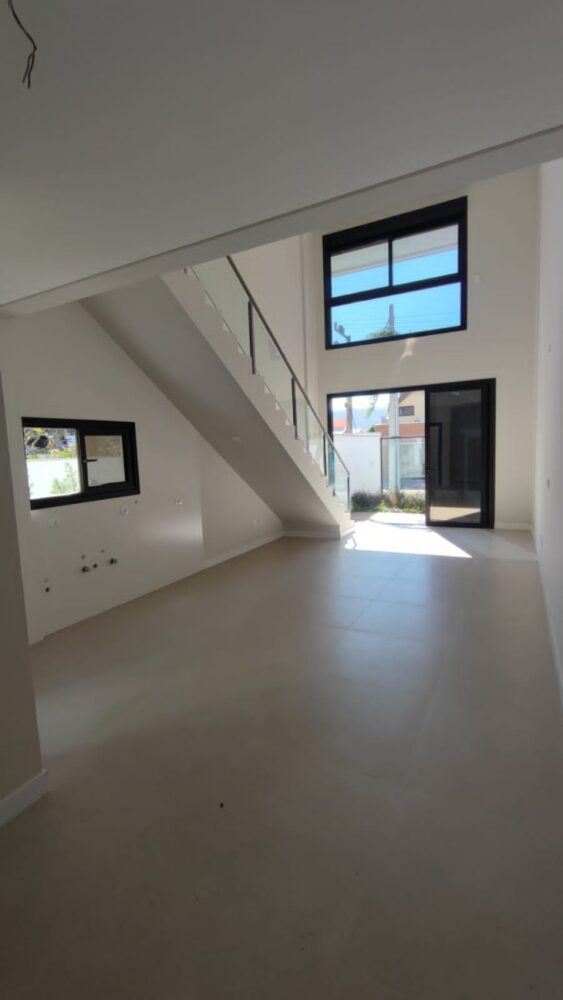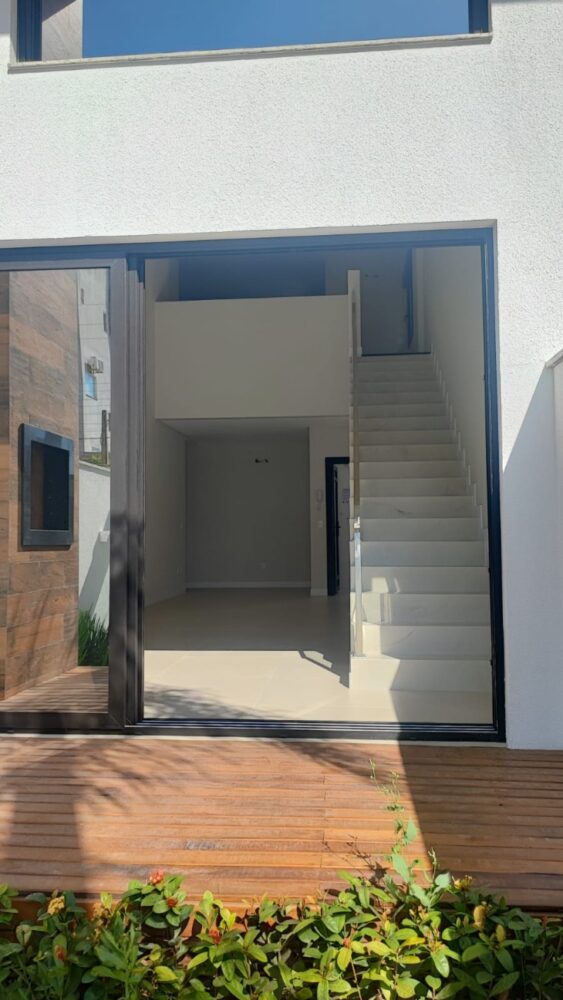 Triplex com vista para o mar a 80m da Praia de Canto Grande 1° Piso – Sala de estar com TV SMART…