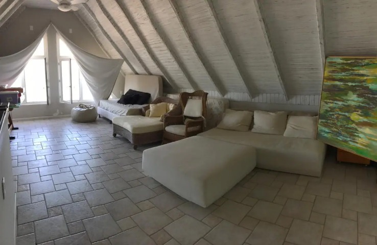 – Sótão com diversos sofás, cama de solteiro, colchões extras, TV a Cabo e ar-condicionado split